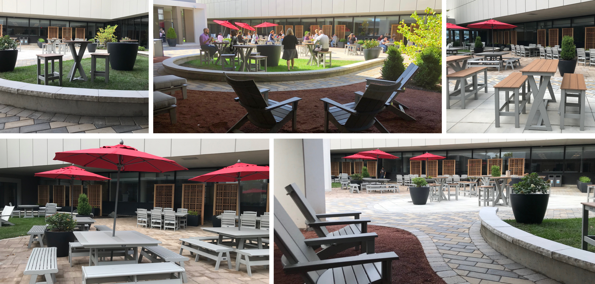My first project at Walgreens was to transform an unused courtyard at Walgreen’s corporate campus’ main visitors building. I worked with landscape architects from BrightView in Chicago to bring our shared vision of both a working and lounging space to life. By choosing comfortable furniture, natural stones, bright plant life and fresh architectural features, this space will engage visitors and employees alike at our corporate headquarters.