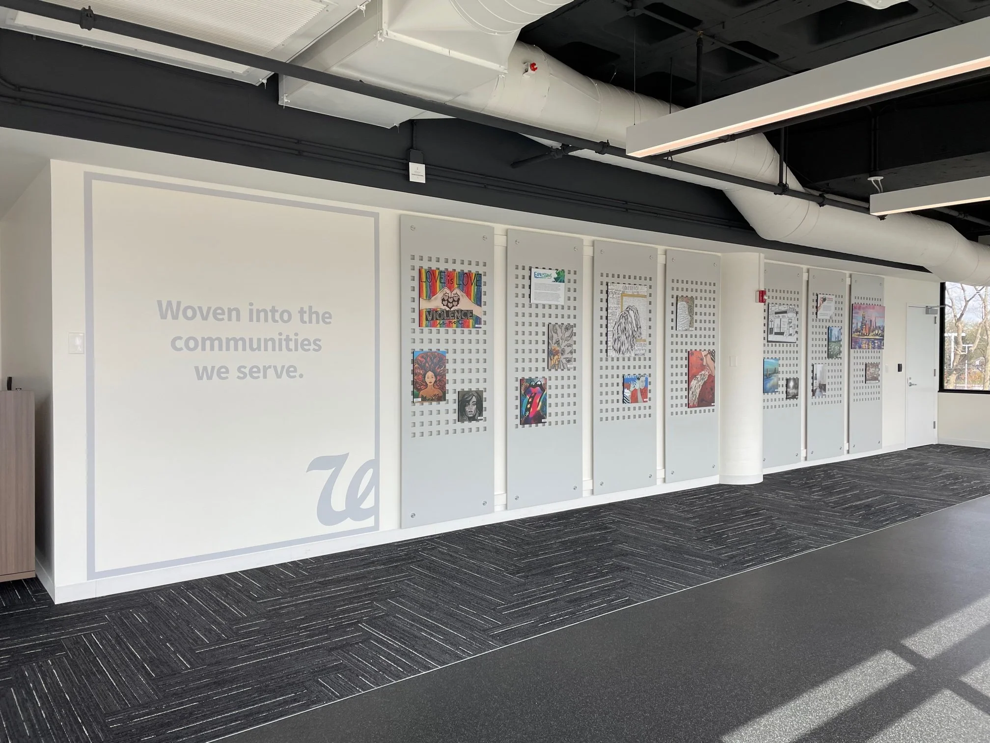 This interchangeable art installation wall currently features student art through our outreach program Expressions, a platform established by Walgreens to educate, empower and equip young people and their community with insights and resources on issues impacting teens. The goal of this space is to be able to highlight the talents of not only our communities, but our employees as well.